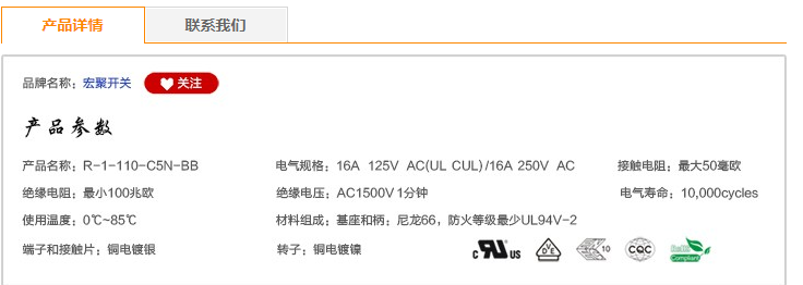 大電流的船型開關(guān)外形與普通的船型開關(guān)一樣,但是電流可以達(dá)到15A的參數(shù)要求。這是一款:R-1-110-C5N-BB大電流的船型開關(guān)參數(shù):