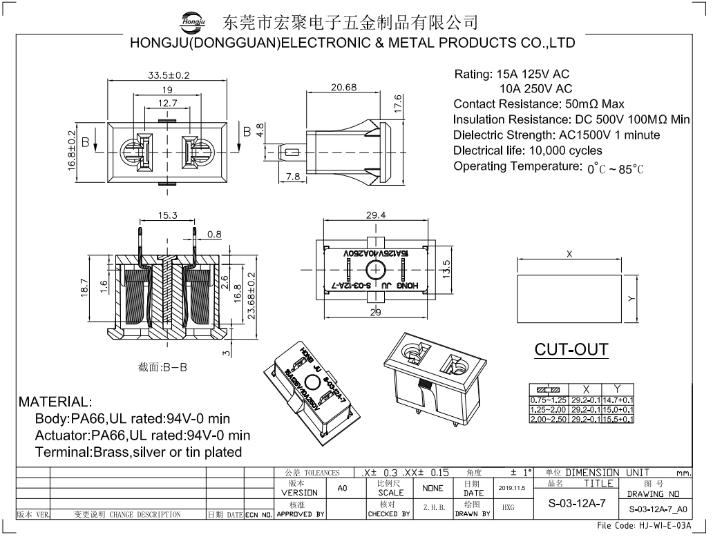 東莞市宏聚電子五金制品有限公司成立于2005年,公司主要生產(chǎn)和研發(fā)船型開關(guān)帶燈輕觸開關(guān)、按鍵開關(guān)保險絲管座、電源插座等電子開關(guān)類產(chǎn)品。公司所有出口開關(guān)產(chǎn)品均通過 UL、CE、CQC、CCC 等多國安規(guī)認證。我公司己實施 ISO9001:2008管理模式并且取得相關(guān)證書,所有產(chǎn)品均有作過SGS環(huán)保檢測。